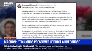 « L'Etat de droit est le socle de notre démocratie. L'indépendance de l'autorité judiciaire, son impartialité comme la protection des magistrats qui la rendent, en sont les piliers essentiels », écrit Emmanuel Macron. « Les décisions de justice peuvent être commentées ou critiquées dans le débat public mais toujours dans le respect de chacun », ajoute-t-il, en précisant que la présomption d'innocence et le droit au recours doivent être préservés.